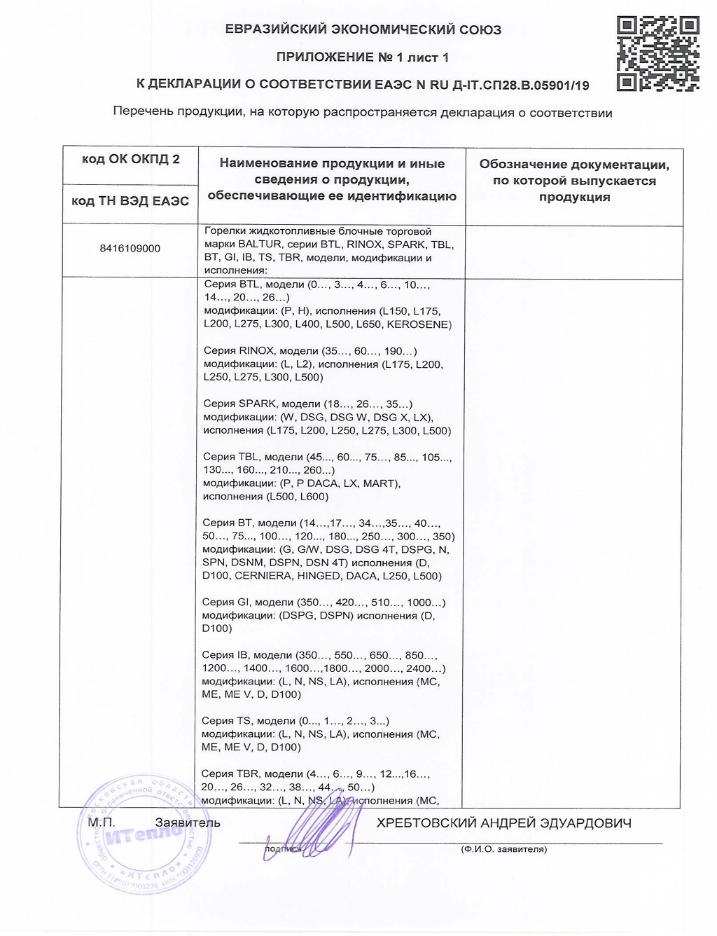 — Акт приёмки-передачи оборудования от завода-изготовителя (РФ, ГОСТ Р 58430-2019);