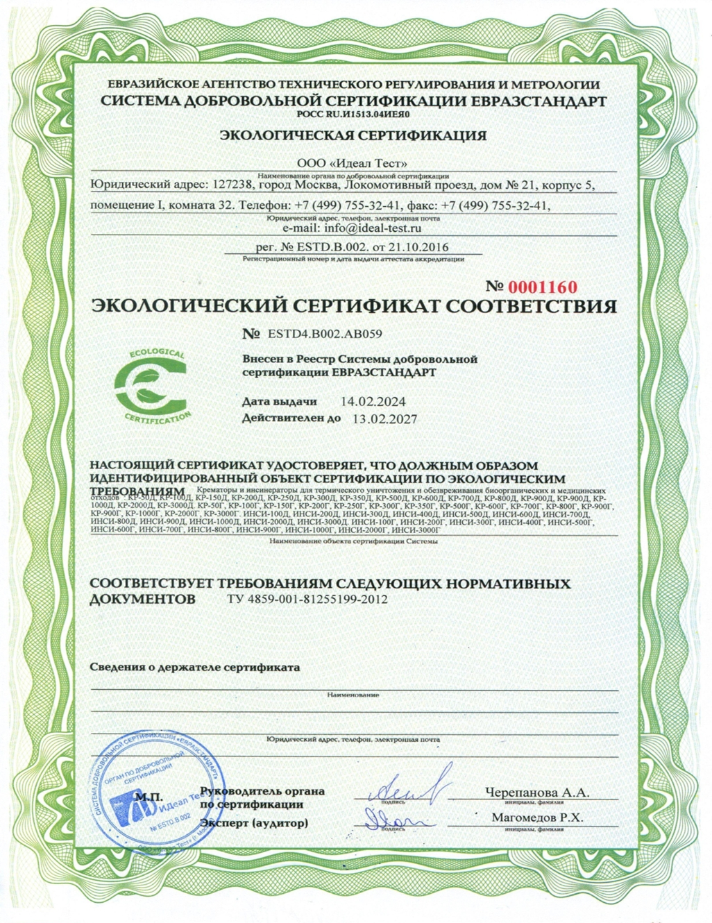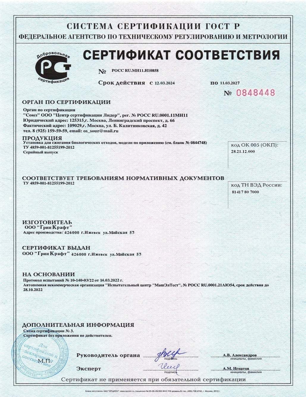 Наш крематор для животных соответствует требованиям технического регламента ТР ТС 010/2011 и СанПиН 2.1.3684-21. Имеются следующие документы: