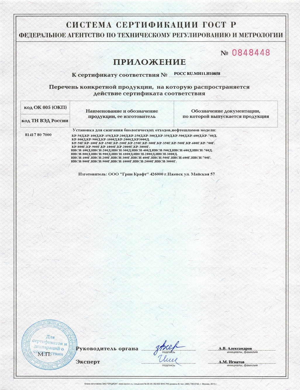 — Санитарно-эпидемиологическое заключение — разрешает эксплуатацию установки в пределах населённых пунктов при соблюдении норм выбросов;